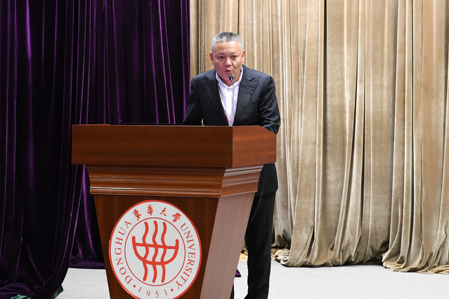 纺机85级、欧瑞康(中国)科技有限公司上海分公司区域销售总监谭宏作为校友代表发言。他回忆了在校求学期间的点点滴滴,并简单介绍了毕业后的工作经历。家族中有4位东华校友的他,坚守纺机行业数十载,言语之间充满了对母校的自豪和对纺织行业的骄傲,他代表广大校友祝愿母校发展蒸蒸日上,纺织事业红红火火。