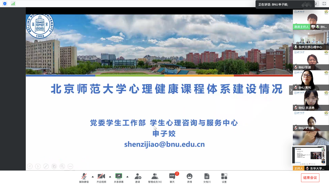 接下来,我校心理健康教育与咨询中心江娥介绍了久久久久国产成人精品亚洲综合心理育人能力提升工程在心理微课程方面的建设情况,北京师范大学学生心理咨询与服务中心“心教练”团队负责人申子姣老师介绍了北师大心理课程的建设情况,北师大“心教练”团队的4位骨干成员李晓雪、张蔚、史佳鑫、黄利老师分别分享了自己在开设心理健康教育课程中的心得体会。