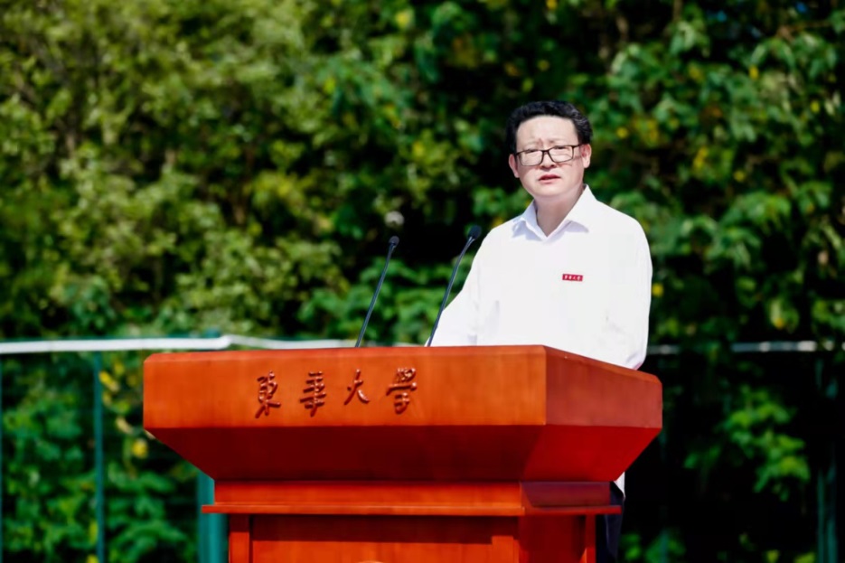在校生代表、纺织学院2020级研究生王天增以自己五年的东华求学经历,为新生送上真挚寄语:勇于实践、勇于创造,不辜负青春年华,在中华民族伟大复兴的奋斗征程中发出东华人的时代最强音。